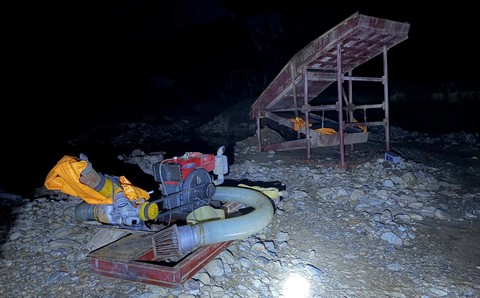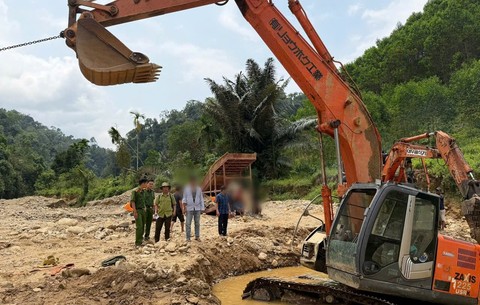 Trong quá trình khai thác, chiếc máy đào đất, đá bị lật nghiêng nên phương tiện và mượn máy móc khác được đưa vào để tổ chức cứu hộ nhằm tiếp tục khai thác vàng trái phép.