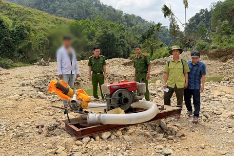 Công an bắt quả tang nhiều đối tượng và qua đấu tranh ban đầu, xác định Võ Đức Công (36 tuổi, ngụ xã Gò Nổi, TP Đà Nẵng) là người cầm đầu, tổ chức đưa máy móc, thiết bị vào khu vực trên để tổ chức khai thác vàng sa khoáng trái phép trên suối.