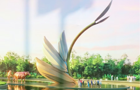Mô hình kiến trúc biểu tượng tôn vinh lúa nước (hay còn gọi là Biểu tượng ba hạt lúa) có tổng chiều cao 24m, trong đó riêng phần 3 hạt lúa cao 18m, do nhóm KTS Vương Hoàng Lê, Hội viên Hội Kiến trúc sư Việt Nam chủ trì. Tổng khái toán công trình dự kiến khoảng 20 tỷ từ nguồn xã hội hoá. Dự kiến công trình sẽ hoàn thành vào cuối năm 2026.