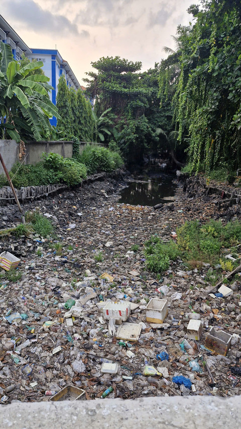 Đoạn cuối tiếp nối ra kênh Tham Lương cũng ngập tràn rác dưới lòng kênh