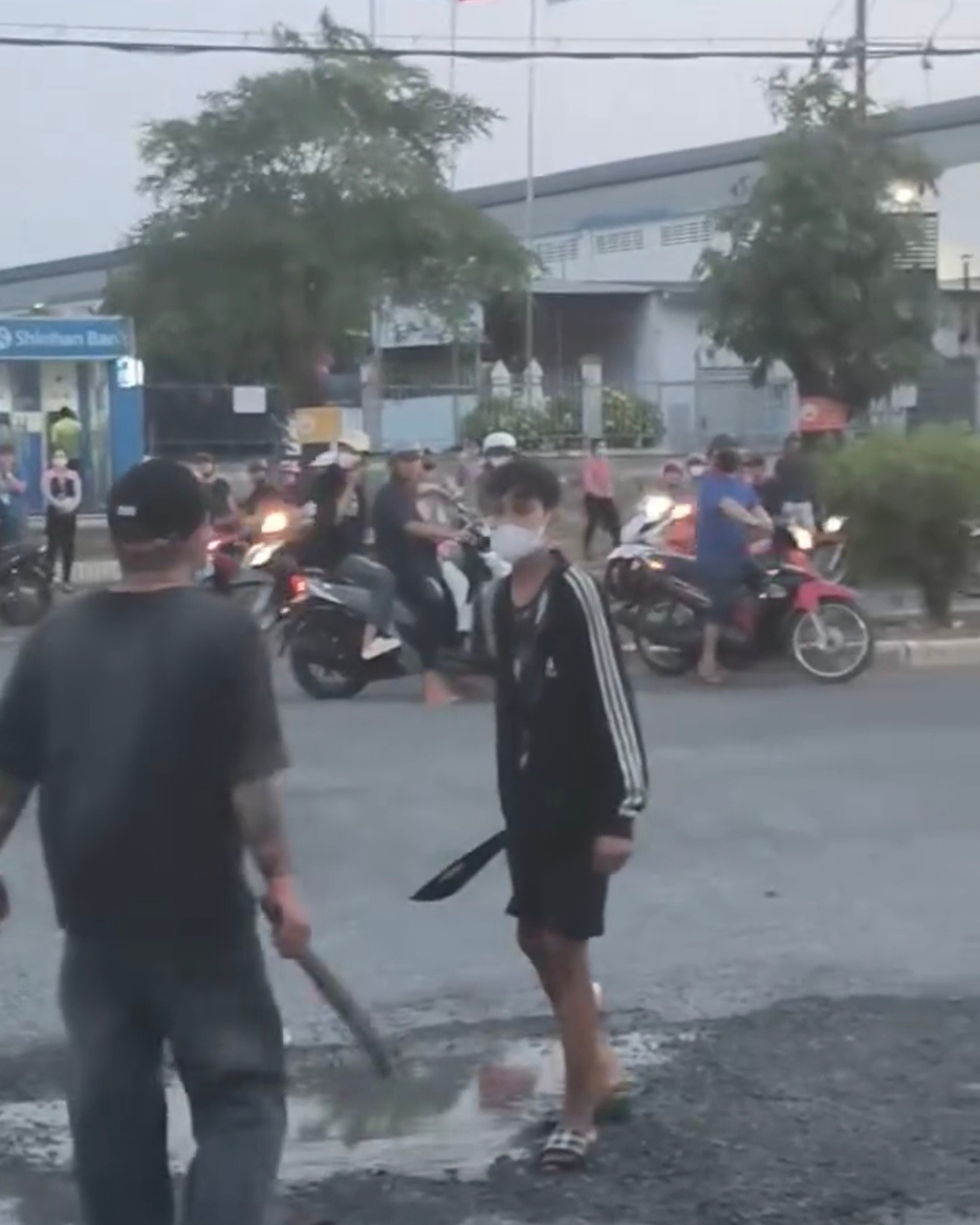 Trước đó, mạng xã hội lan truyền đoạn clip ghi lại cảnh nhóm thanh niên cầm theo hung khí rượt đuổi, đánh nhau trên đường, thời điểm có đông công nhân tan ca.