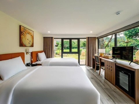 Không gian phòng nghỉ sang trọng, hài hòa thiên nhiên.