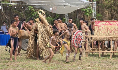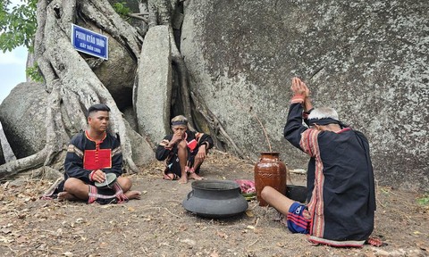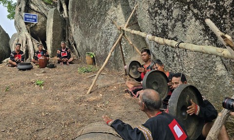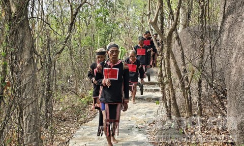 phụ tá vua lửa cùng hội đồng già làng lên núi thiêng Chư Tao Yang để làm nghi lễ.