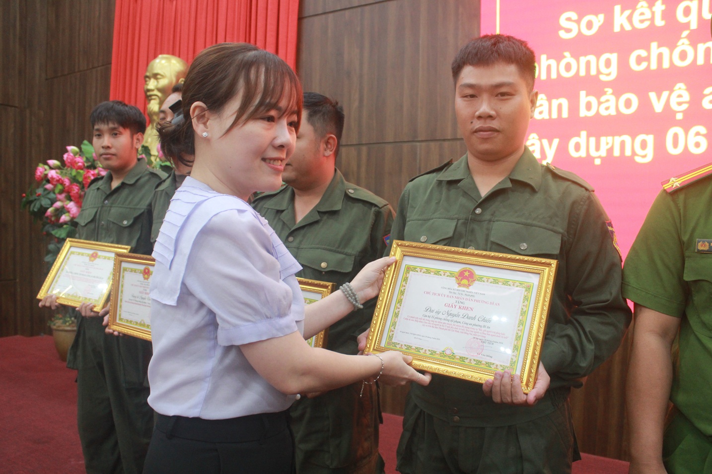 Tại Hội nghị, Ban chỉ đạo và Tổ giúp việc Ban chỉ đạo phòng, chống tội phạm và xây dựng phong trào toàn dân bảo vệ an ninh Tổ quốc phường Dĩ An được thành lập gồm các thành viên: Ông Trần Văn Đào, Phó Chủ tịch UBND phường làm Trưởng ban; Thượng tá Hồ Hoàng Thanh, Trưởng Công an phường làm Phó trưởng ban thường trực; Trung tá Lê Quang Tuấn, Phó Trưởng Công an phường làm Phó trưởng ban; ông Nguyễn Phương Thiện, Chỉ huy trưởng Ban Chỉ huy Quân sự phường làm Phó trưởng ban.