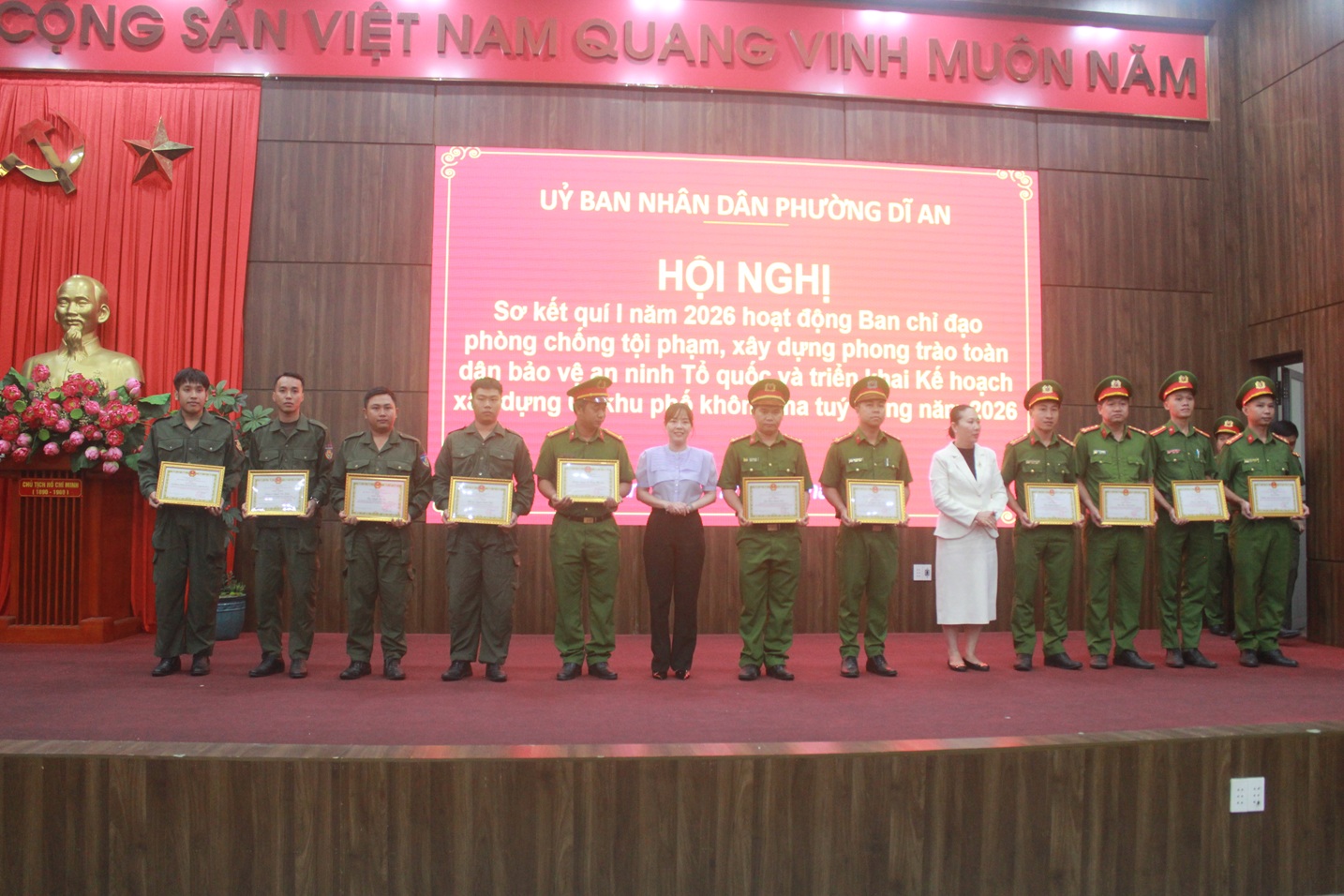 (CAO) Ngày 21/4, phường Dĩ An, TPHCM tổ chức Hội nghị sơ kết quý I năm 2026 hoạt động Ban chỉ đạo phòng chống tội phạm, xây dựng phong trào toàn dân bảo vệ an ninh Tổ quốc và triển khai Kế hoạch xây dựng 6 khu phố không ma túy trong năm 2026.