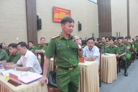 Thượng tá Hồ Hoàng Thanh, Trưởng Công an phường Dĩ An phát biểu tại hội nghị