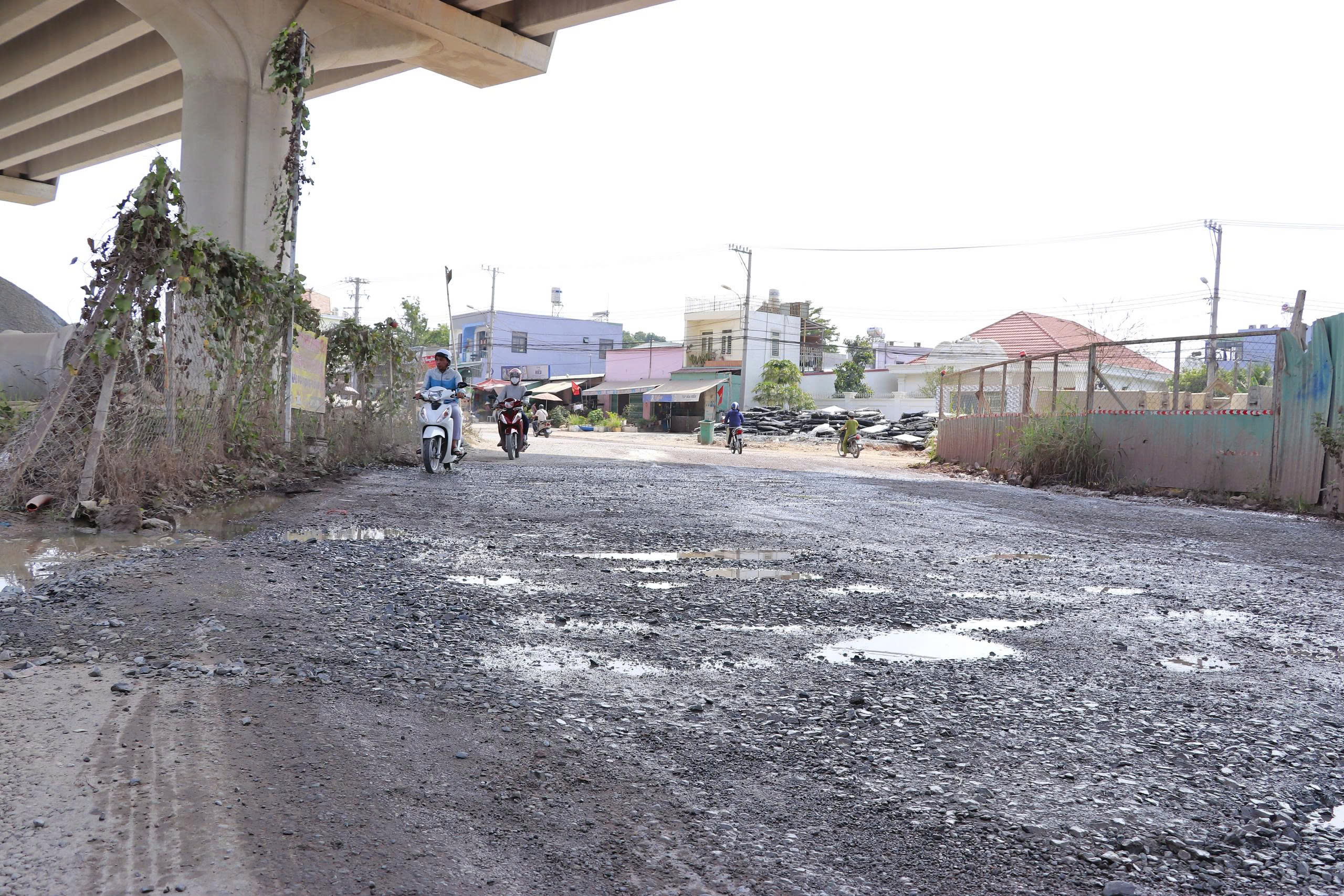Đoạn đường phục vụ thi công trong tình trạng gồ ghề, sụt lún, tiềm ẩn nguy cơ mất an toàn giao thông, đặc biệt vào giờ cao điểm và khi trời mưa.
