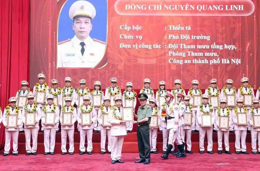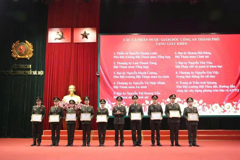 Thiếu tá Nguyễn Quang Linh cùng các cá nhân được Giám đốc CATP Hà Nội tặng Giấy khen vì có thành tích xuất sắc trong công tác năm 2025