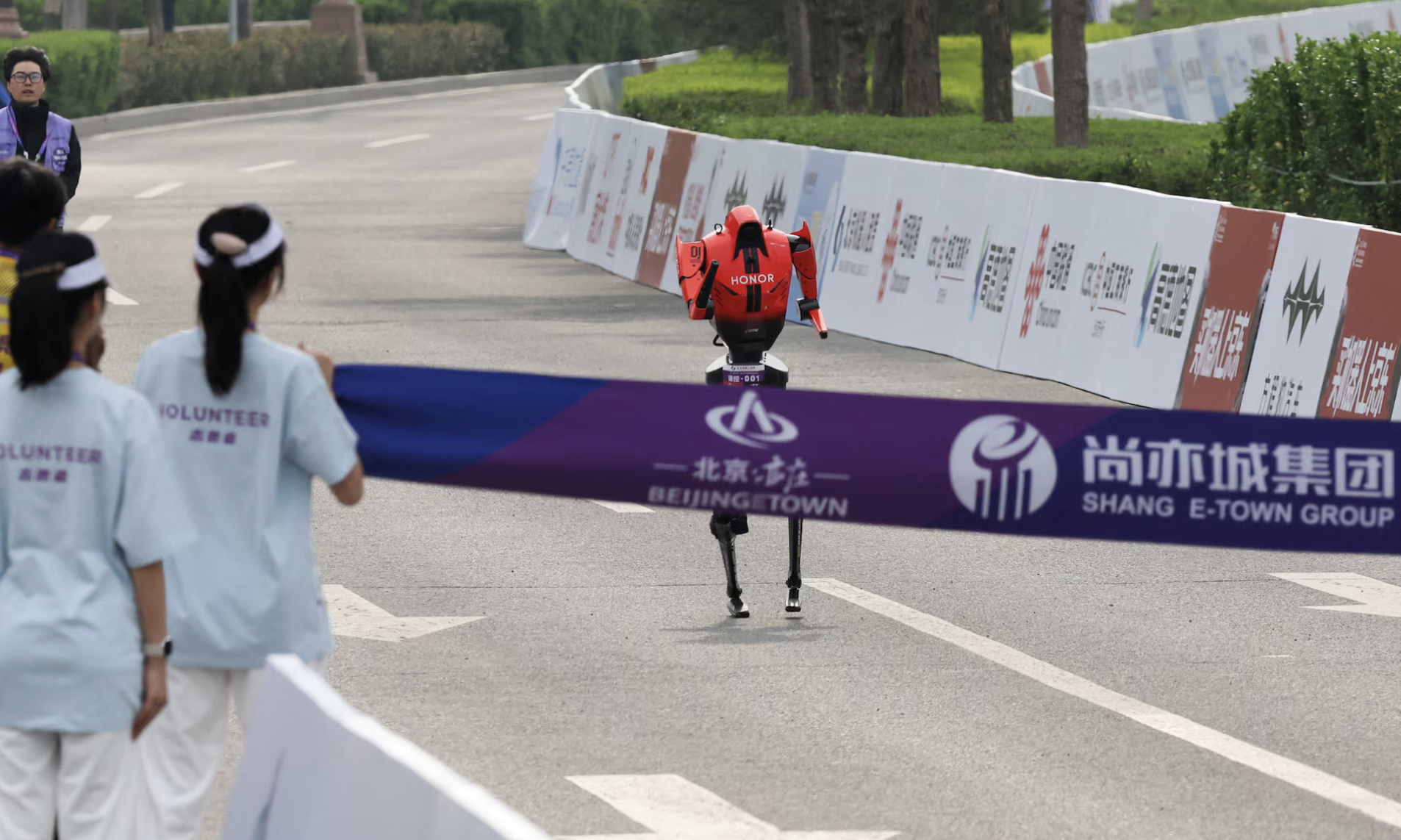 Robot chiến thắng năm nay do Honor - một nhà sản xuất điện thoại thông minh nổi tiếng của Trung Quốc phát triển, đã hoàn thành cuộc đua trong 50 phút 26 giây, nhanh hơn vài phút so với kỷ lục thế giới do Jacob Kiplimo thiết lập tháng trước tại Lisbon (Bồ Đào Nha), mặc dù người máy hình người này đã phải được hỗ trợ đứng dậy ở nơi chỉ cách vạch đích vài mét sau khi va vào lan can.