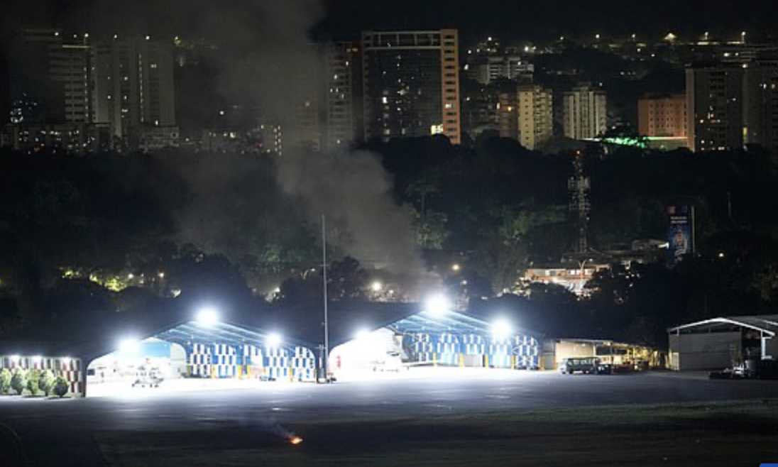 Khói có thể được nhìn thấy bốc lên từ nhà chứa máy bay của một căn cứ quân sự ở Caracas. Một cơ sở quân sự khác trong thủ đô bị mất điện.