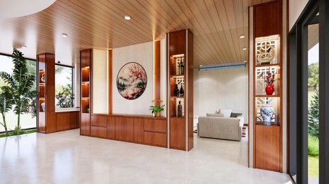 Từ khu vực phòng trà đóng vai trò chuyển tiếp, giúp điều chỉnh trạng thái, đến những bàn tròn định hình phong cách đối thoại cân bằng, mọi chi tiết đều được tính toán để cuộc trao đổi diễn ra tự nhiên và hiệu quả. Cảnh quan xanh mát xung quanh góp phần duy trì trạng thái cảm xúc ổn định, tạo cảm giác dễ chịu trong suốt thời gian lưu lại.