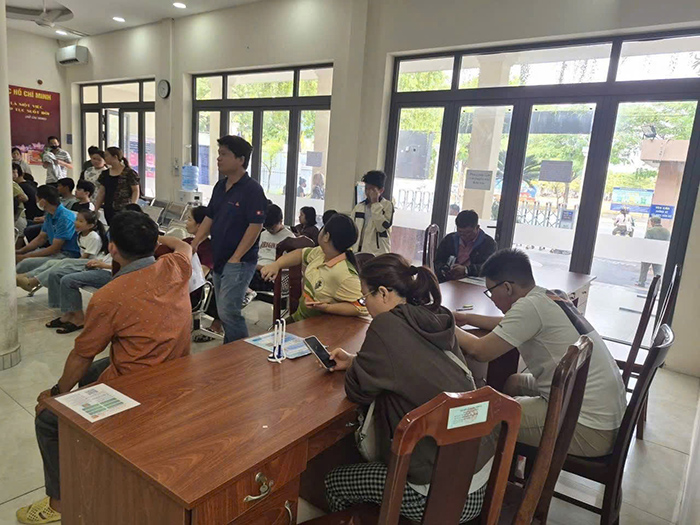 Đông đảo người dân, các em học sinh đến trụ sở Công an phường Đông Hưng Thuận để làm thủ tục cấp căn cước và tài khoản định danh điện tử mức độ 2