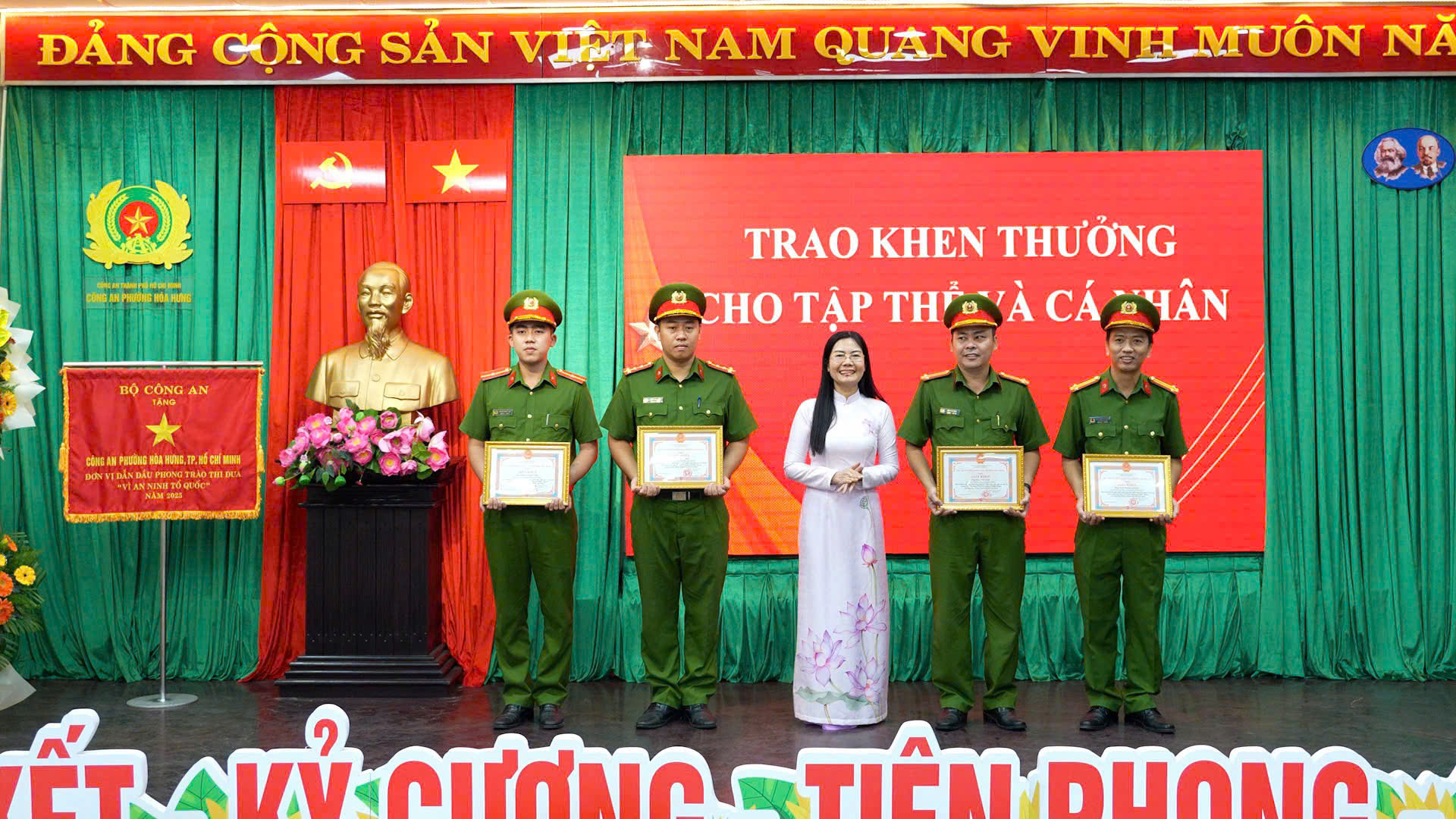 Đại diện lãnh đạo phường Hòa Hưng trao khen thưởng cho các tập thể, cá nhân có thành tích xuất sắc