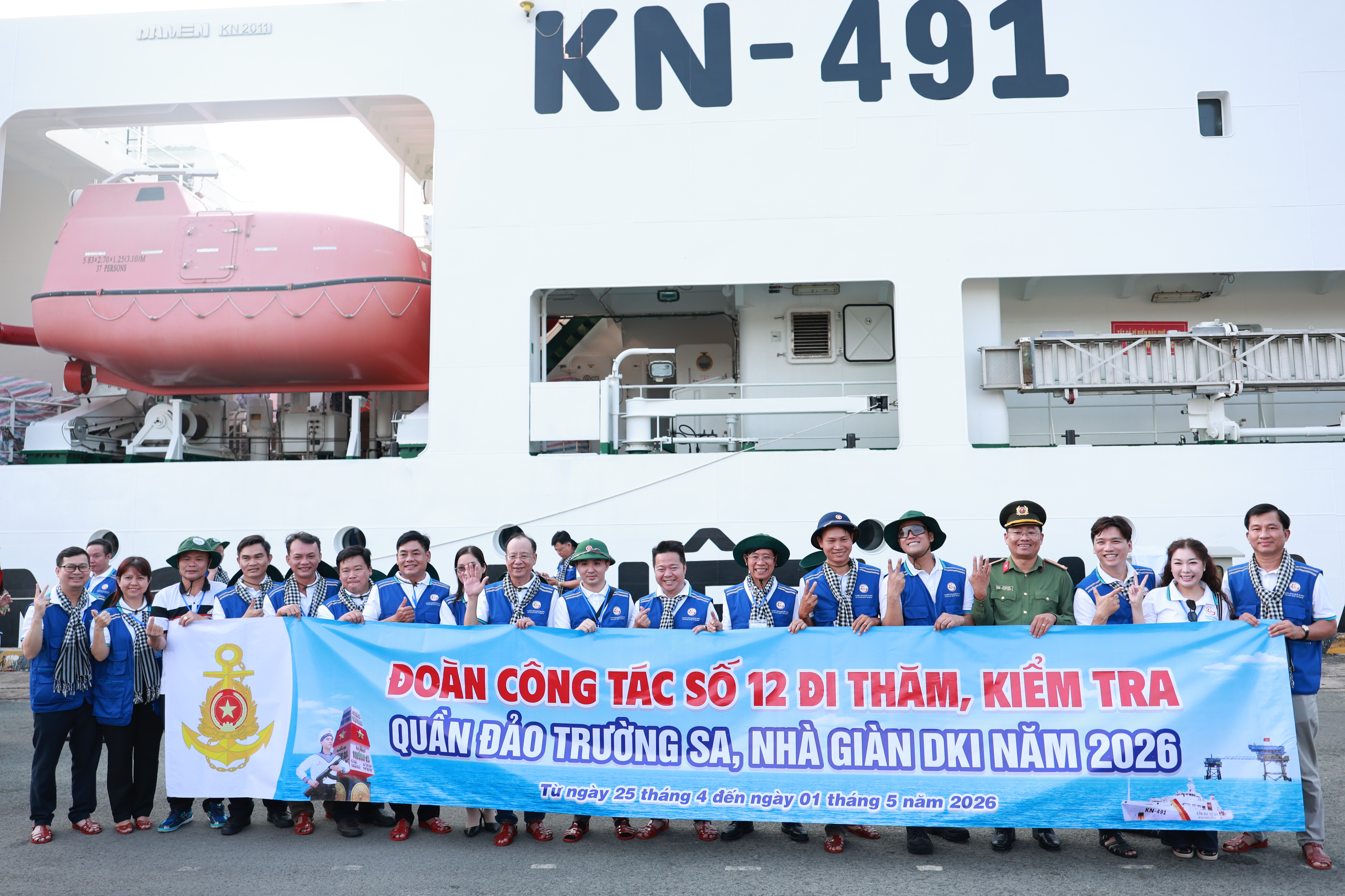 (CAO) Sáng 25/4, đoàn đại biểu TPHCM (đoàn công tác số 12) lên tàu Kiểm ngư KN-491, bắt đầu hành trình hướng về biển đảo của Tổ quốc, thăm, động viên quân và dân tại Quần đảo Trường Sa và Nhà giàn DK1.