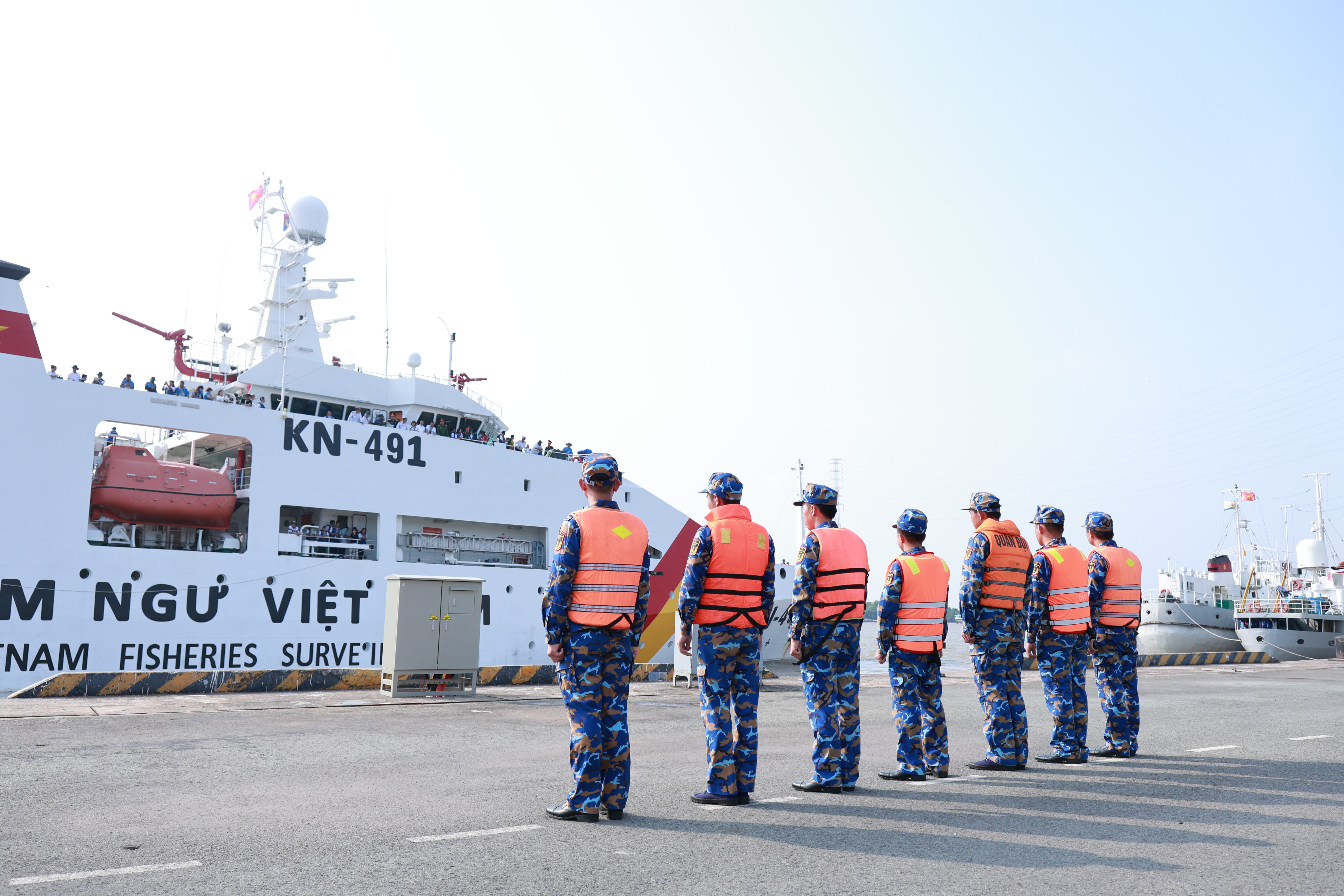 Đúng 8 giờ, còi tàu Kiểm ngư KN491 vang vọng, báo hiệu cuộc hải trình bắt đầu
