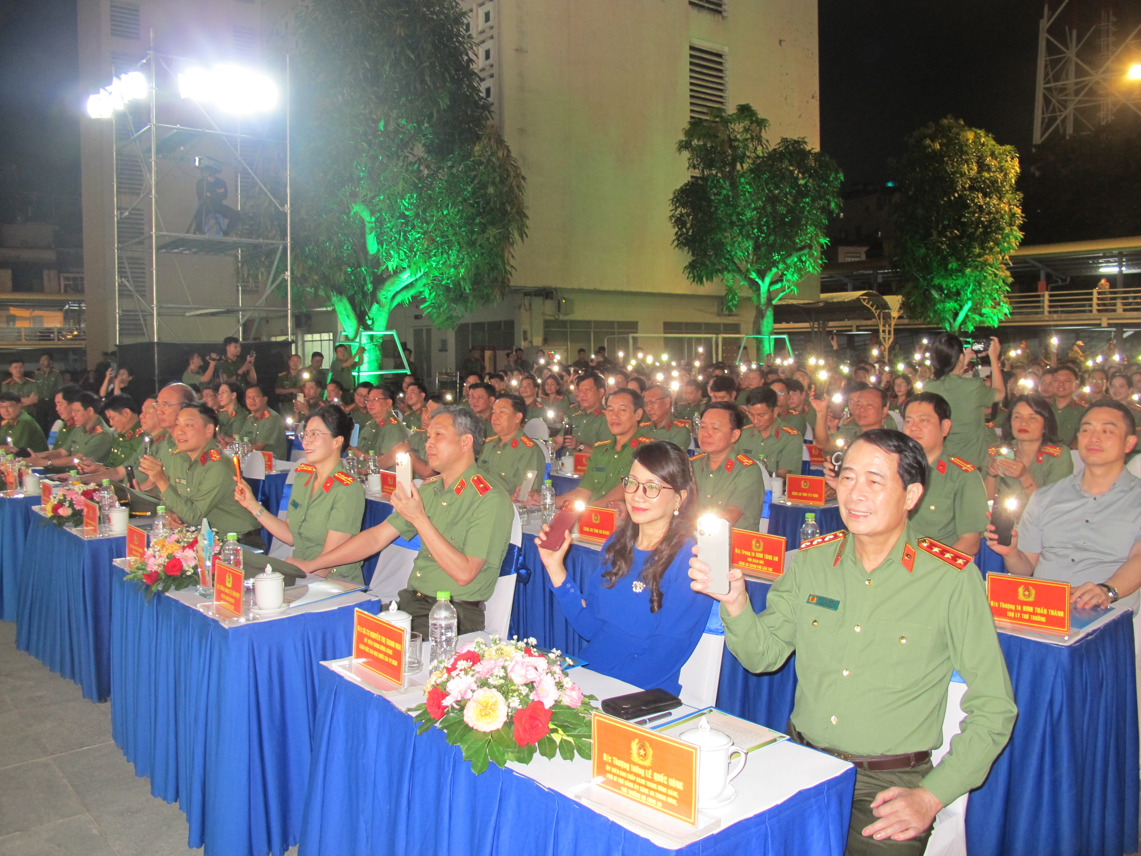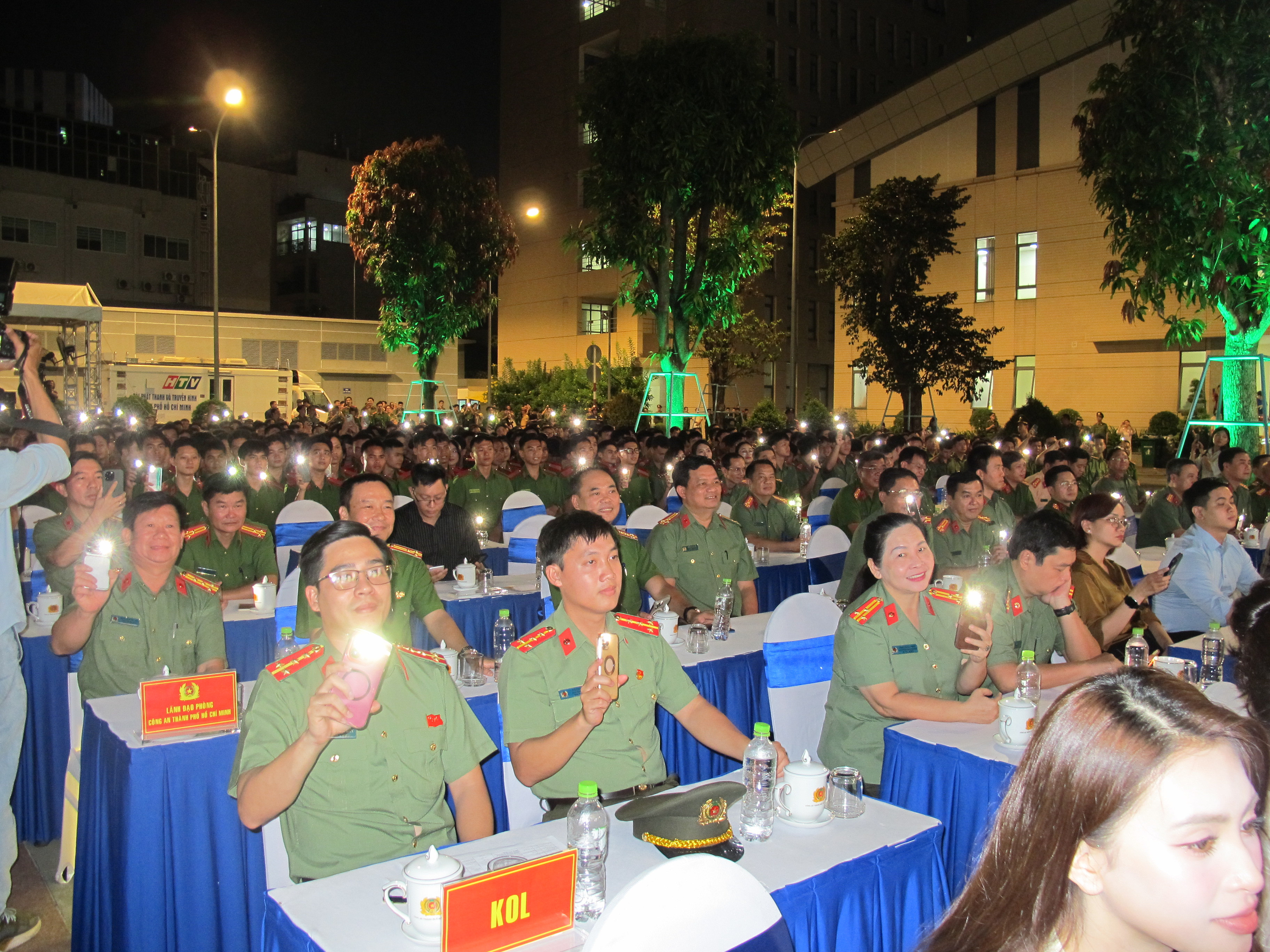 Chương trình còn diễn ra nghi thức cam kết, đó là khoảnh khắc ấn tượng nhất khi toàn thể 1.600 đại biểu và cán bộ, chiến sĩ CAND cùng bật đèn flash điện thoại, tạo hình biểu tượng lá chắn trên quảng trường CATP, thể hiện sự đồng lòng và cam kết bảo vệ bình yên Tổ quốc trên cả đời thực và không gian số. Các đại biểu tham dự chương trình còn được thưởng thức màn bắn pháo khép lại buổi Lễ tại 3 khu vực.