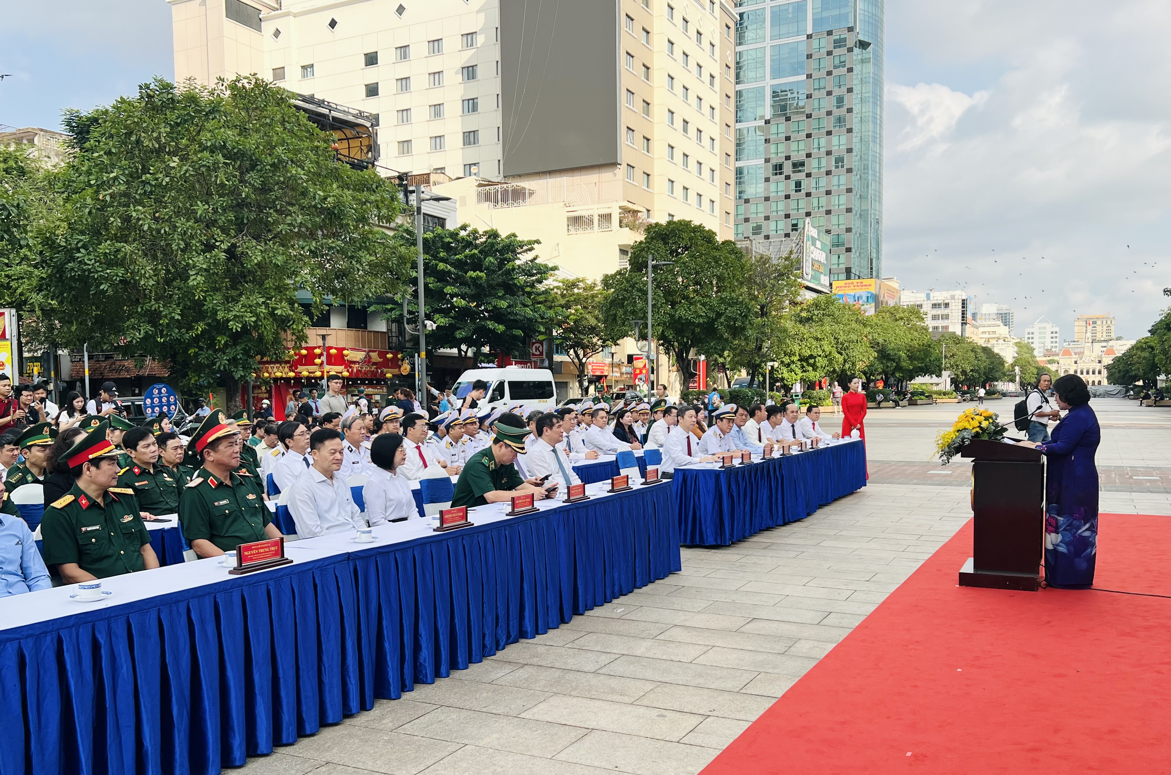 Đến dự có đồng chí Phan Xuân Thủy – Phó Trưởng Ban Tuyên giáo và Dân vận Trung ương, đồng chí Văn Thị Bạch Tuyết – Phó Bí thư Thành ủy TP.HCM, đồng chí Nguyễn Mạnh Cường - Phó Chủ tịch UBND TP.HCM, đồng chí Dương Anh Đức - Trưởng Ban tuyên giáo và Dân vận Thành ủy TP.HCM, Chuẩn Đô đốc Lê Bá Quân, Phó Tư lệnh Quân chủng Hải quân, Thiếu tướng Trần Ngọc Hữu, Phó Tư lệnh Bộ đội Biên phòng, cùng đại diện lãnh đạo các cấp, các ngành và cán bộ chiến sĩ Quân chủng Hải quân và Bộ đội biên phòng…