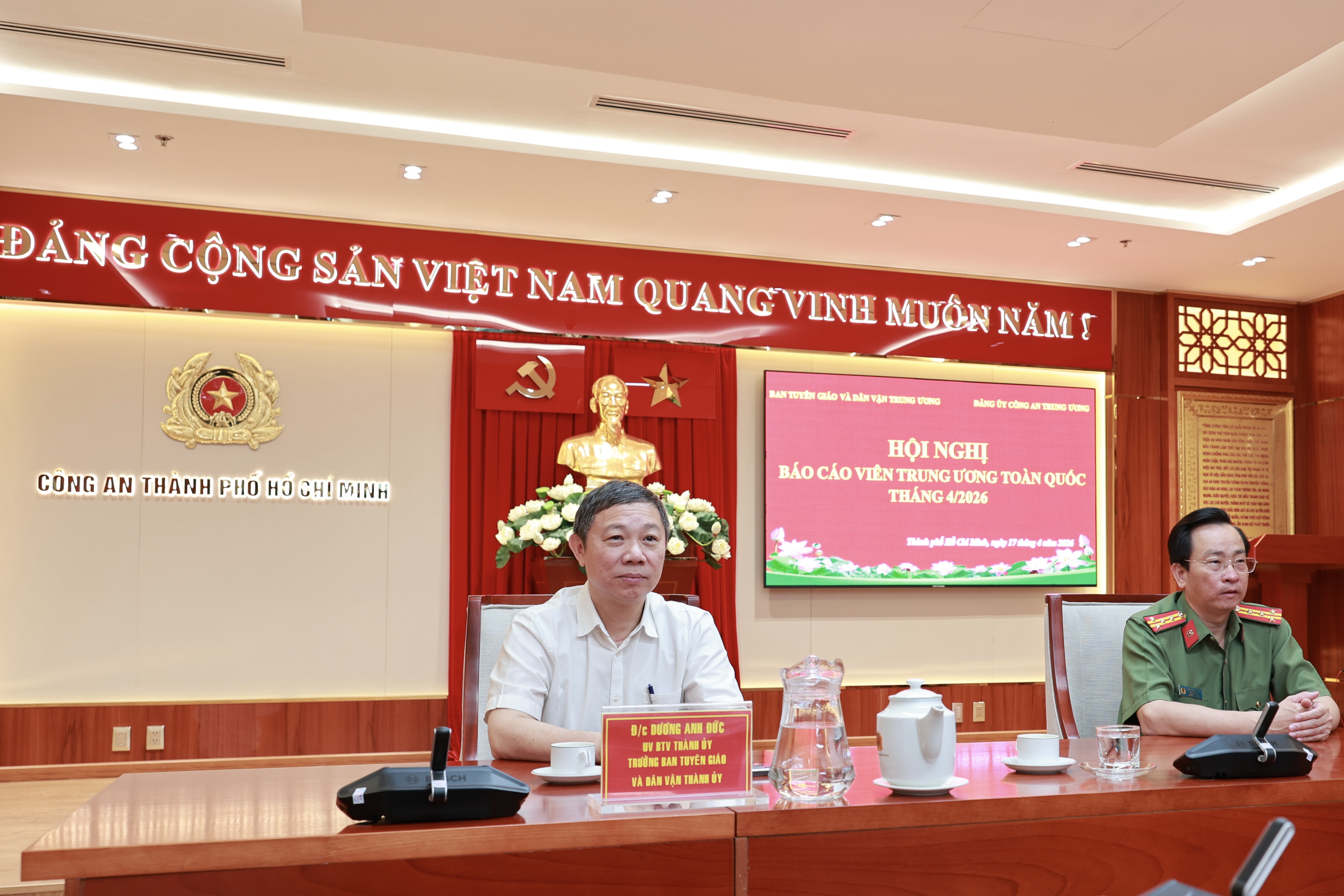 Tại điểm cầu hội trường Công an TPHCM, dự và chủ trì có đồng chí Dương Anh Đức, Uỷ viên Ban Thường vụ Thành uỷ, Trưởng Ban Tuyên giáo và Dân vận TPHCM và Đại tá Bùi Thanh Trực, PGĐ CATP.