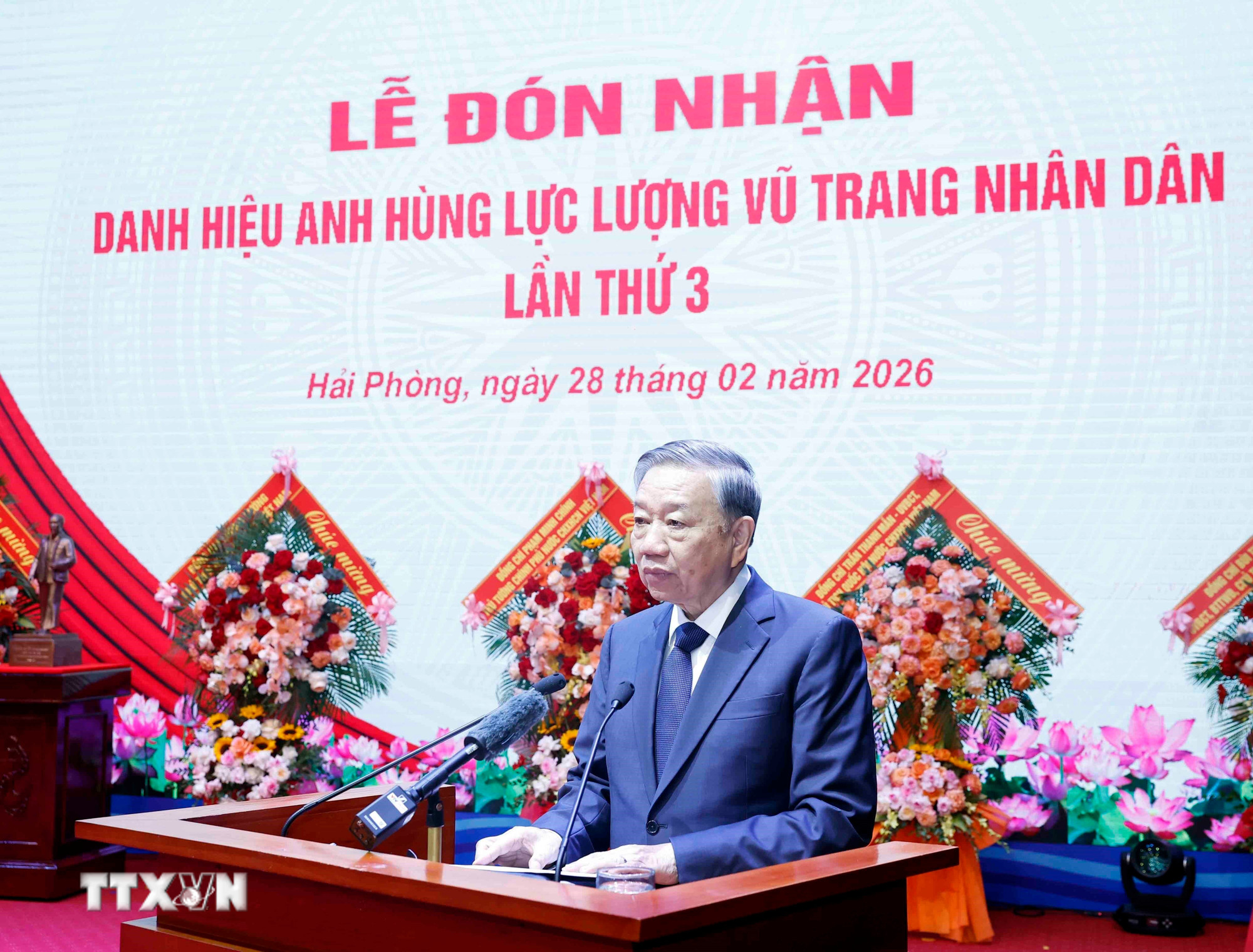 Hôm nay, trong những ngày đầu Xuân Bính Ngọ, khi nhân dân cả nước hân hoan đón Năm mới, Xuân mới trong không khí đầm ấm, tươi vui, phấn khởi, khi cả nước tập trung thực hiện Nghị quyết Đại hội Đảng lần thứ XIV, tôi rất vui mừng tới dự Lễ đón nhận Danh hiệu Anh hùng Lực lượng vũ trang nhân dân lần thứ ba của Quân chủng Hải quân.