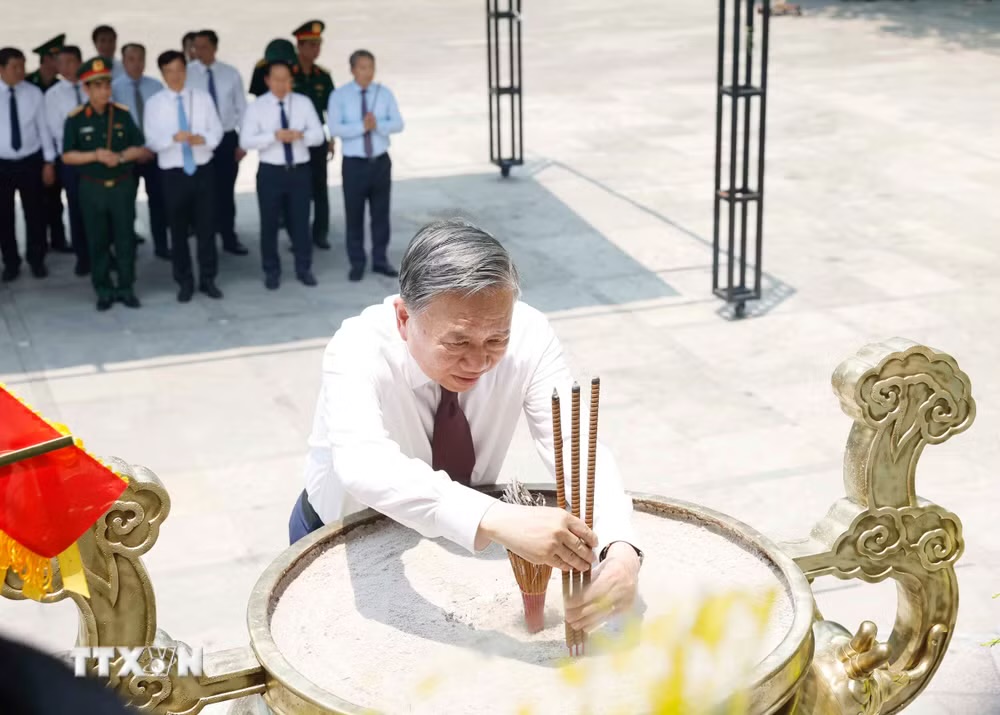 Tổng Bí thư, Chủ tịch nước Tô Lâm dâng hương tại Nghĩa trang liệt sỹ Quốc gia Trường Sơn. (Ảnh: Thống Nhất/TTXVN)