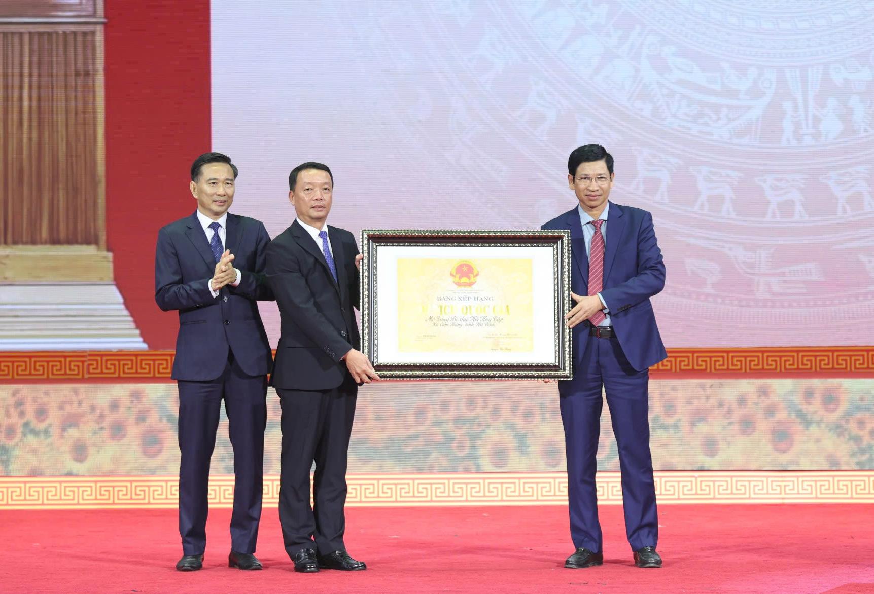 Trong khuôn khổ chương trình buổi lễ, đại diện lãnh đạo Bộ Văn hóa – Thể thao và Du lịch đã trao Bằng công nhận Di tích lịch sử cấp Quốc gia đối với Khu mộ Tổng Bí thư Hà Huy Tập.