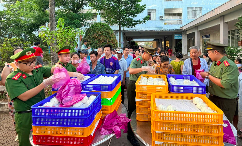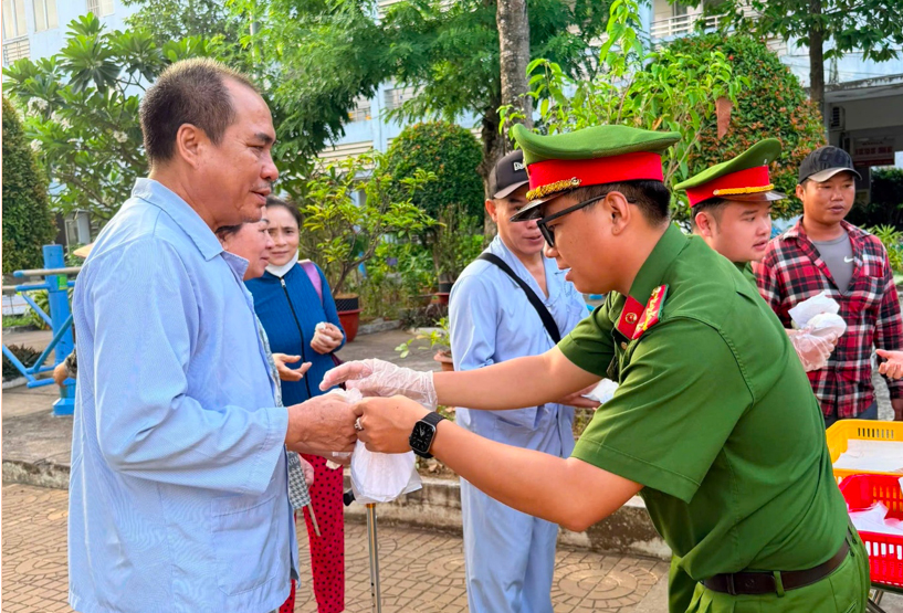 (CAO) Ngày 25/4, Ban Thanh niên Công an tỉnh An Giang phối hợp cùng nhóm thiện nguyện tổ chức “Buổi sáng nghĩa tình”, trao tặng 600 suất ăn cho bệnh nhân và người nhà bệnh nhân tại Bệnh viện y dược cổ truyền Kiên Giang.