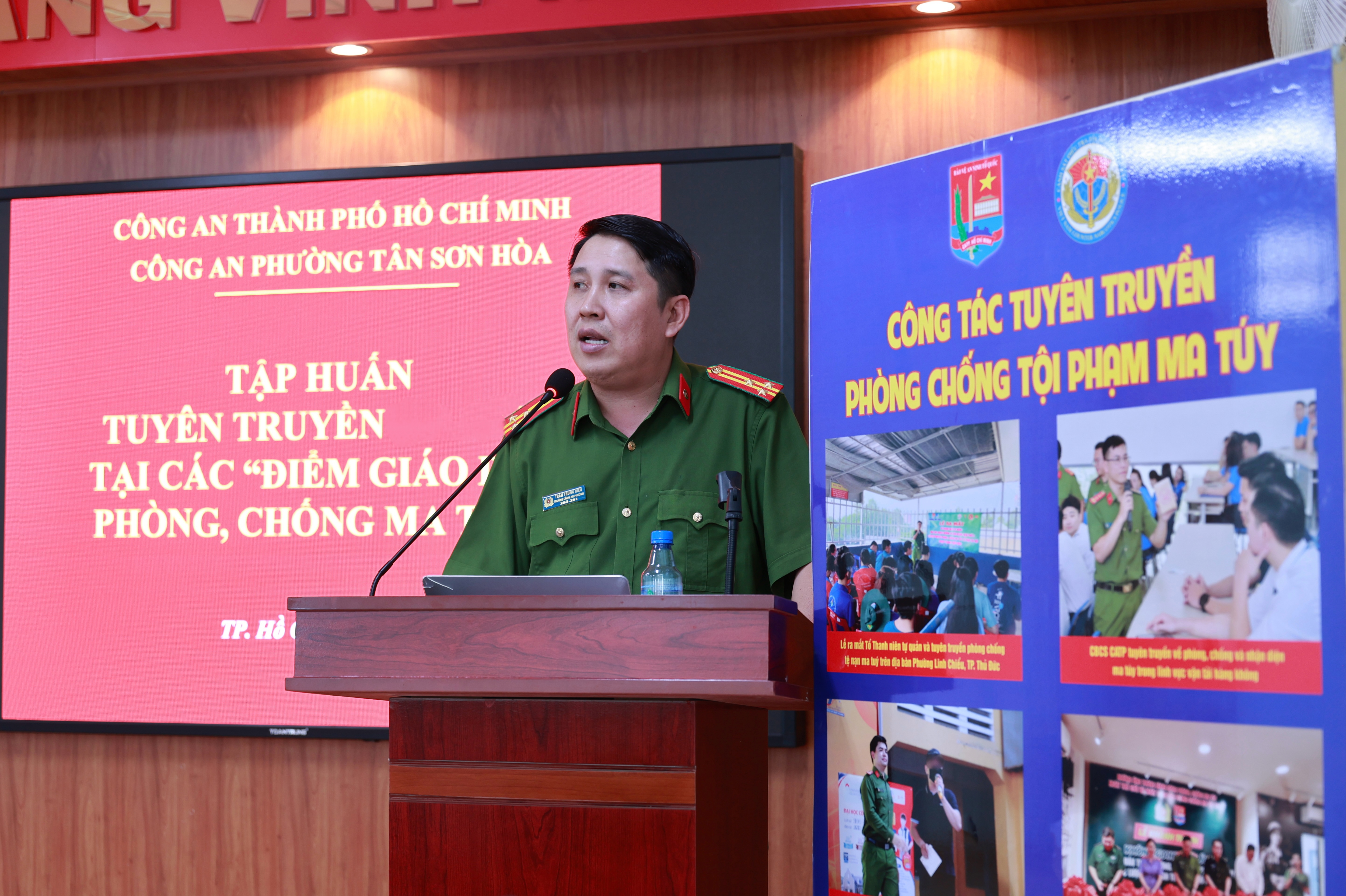 Mở đầu buổi tập huấn, Thiếu tá Vũ Đình Thinh, cán bộ tuyên truyền Phòng Cảnh sát điều tra tội phạm về ma túy Công an TPHCM, đã khái quát những nội dung cơ bản liên quan đến chất ma túy, chất gây nghiện và chất hướng thần. Đồng thời, báo cáo viên cũng chỉ ra các dấu hiệu nhận diện người có nguy cơ cao sử dụng trái phép chất ma túy thông qua những biểu hiện về hành vi, tâm lý và sinh hoạt thường ngày.