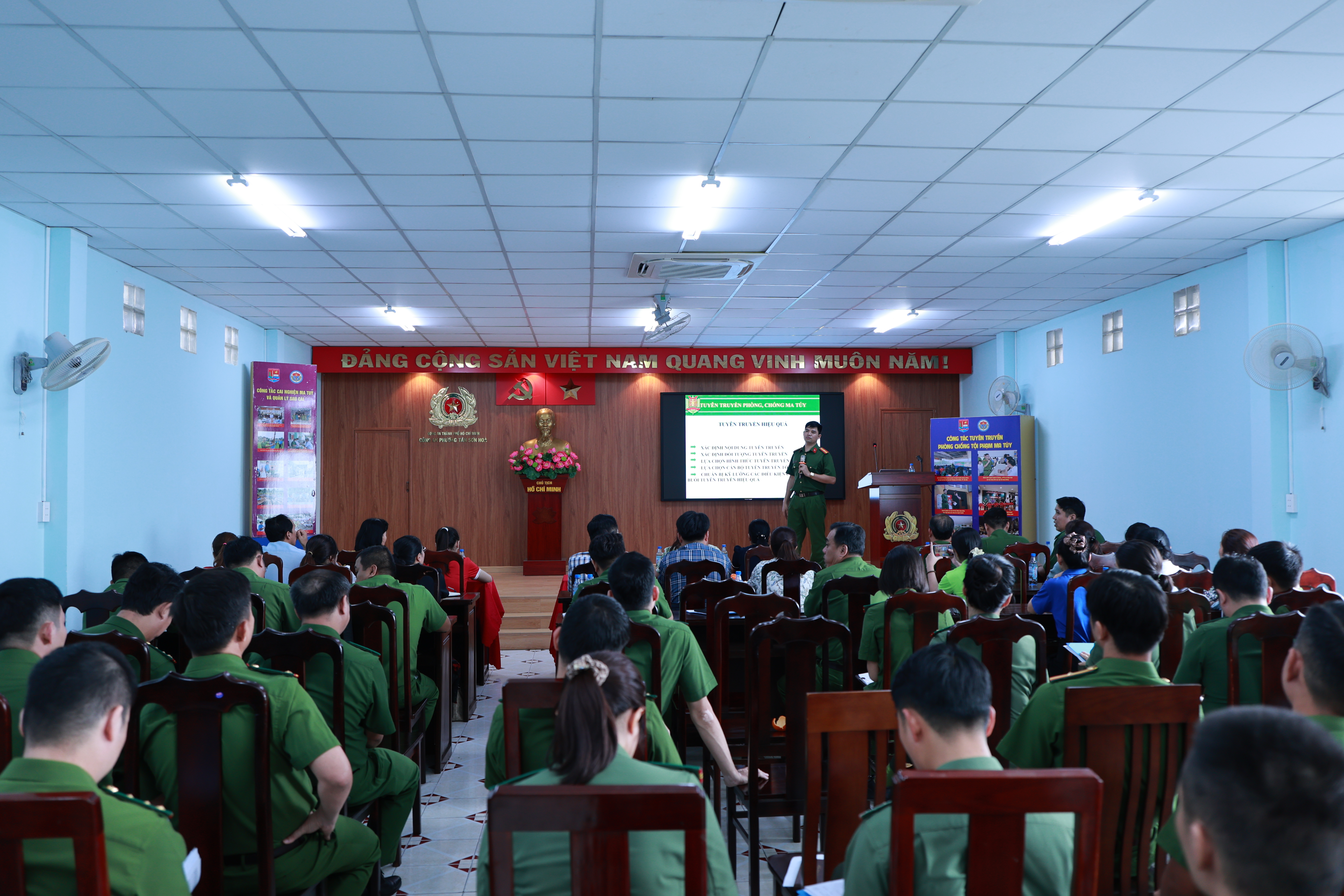 Ngày 22/4, CAP.Tân Sơn Hoà (TPHCM) đã tổ chức lớp tập huấn trang bị kiến thức tuyên truyền phòng ngừa ma tuý cho đội ngũ sư phạm. Hội nghị có sự tham dự của đại diện Ban Giám hiệu, giáo viên các trường học trên địa bàn phường cùng tập thể CBCS Công an phường và các thành viên nòng cốt tham gia triển khai mô hình “Điểm giáo dục phòng, chống ma túy”.