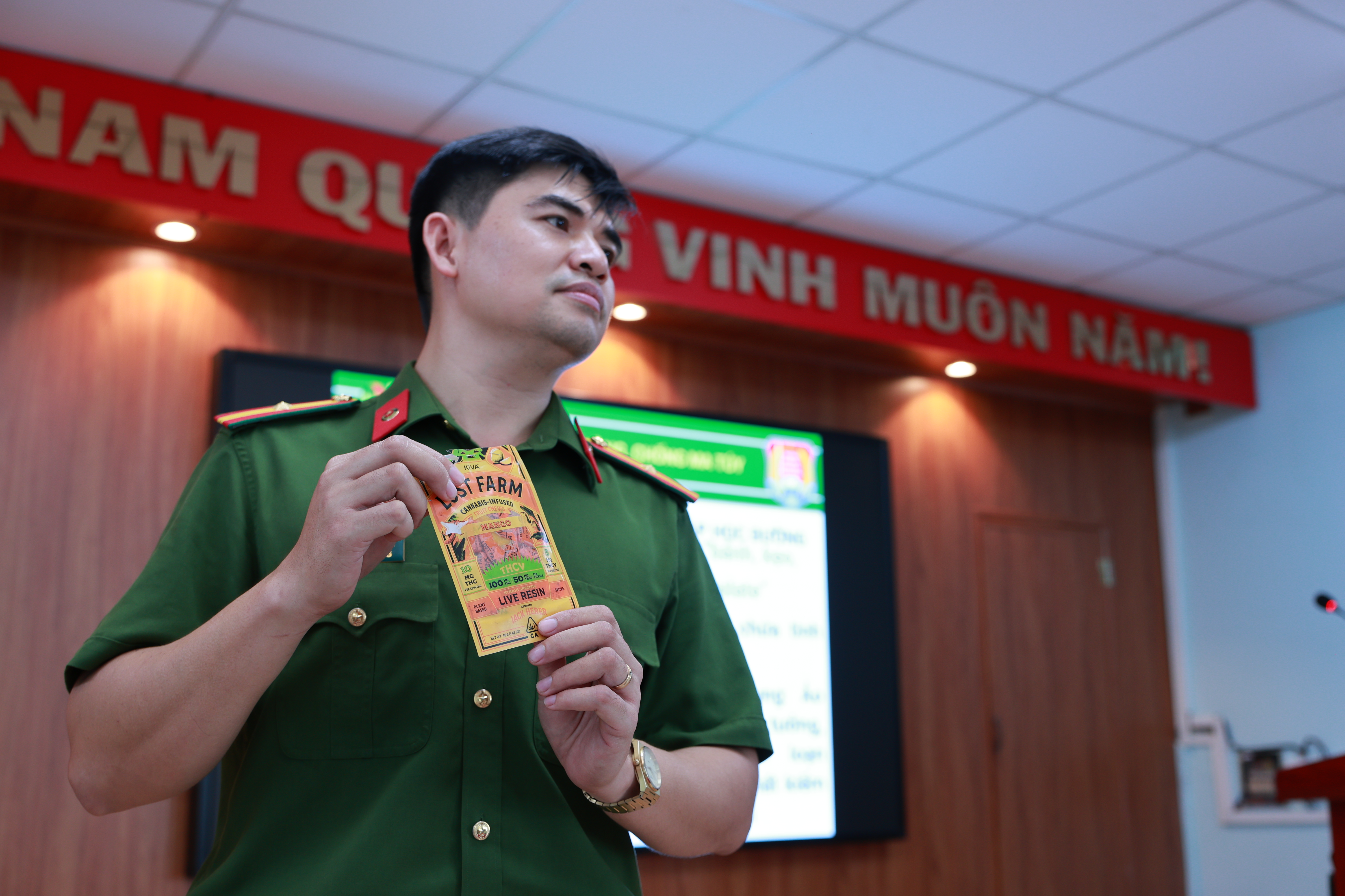 Để minh chứng, Thiếu tá Thinh đã trực tiếp để các thầy, cô giáo có mặt tại hội trường "mục sở thị" hàng loạt các sản phẩm ma tuý kiểu mới, được các đối tượng bên kia biên giới nguỵ trang dưới nhiều lớp vỏ bọc.
